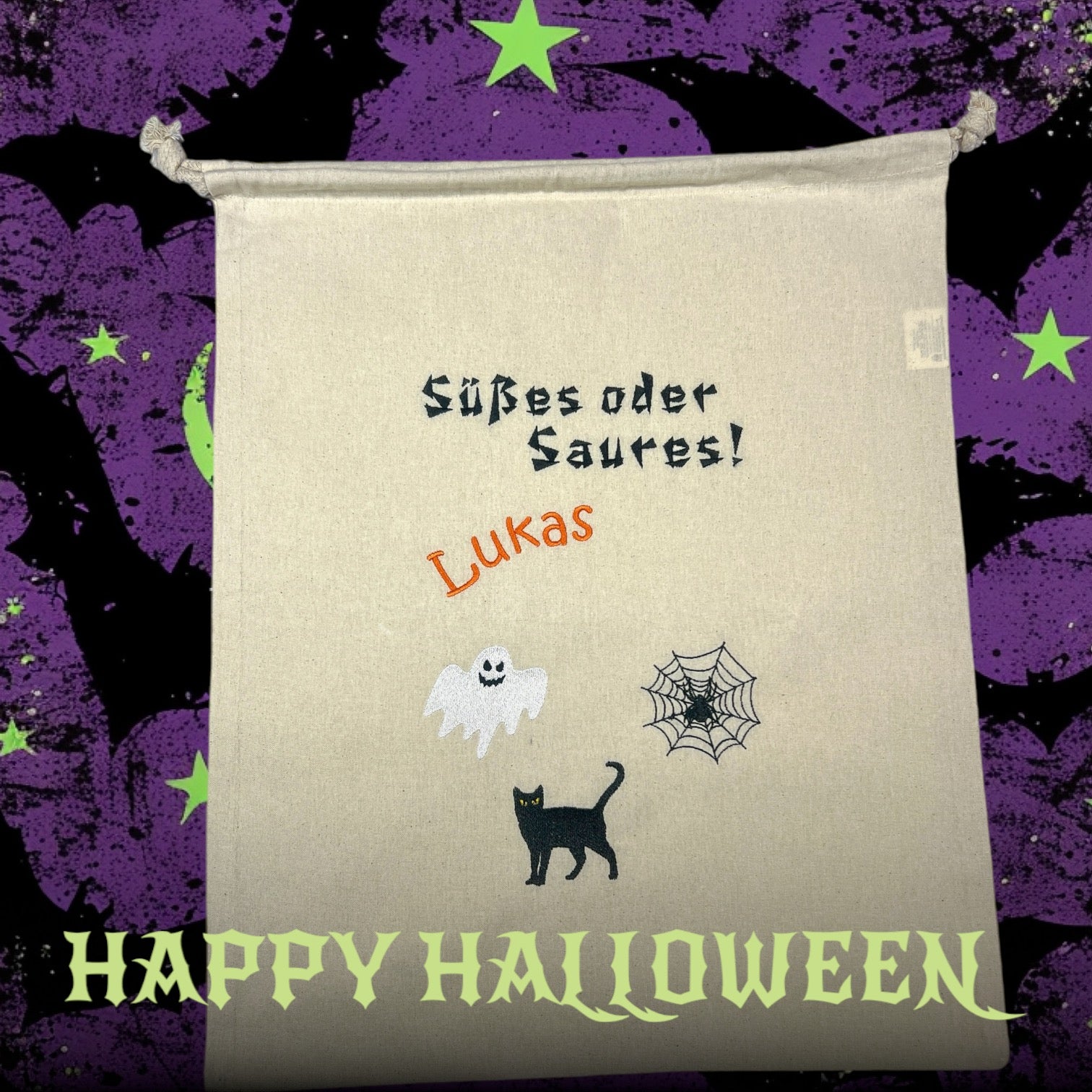 Halloween Süßigkeiten-Sammelbeutel bedruckt mit Namen