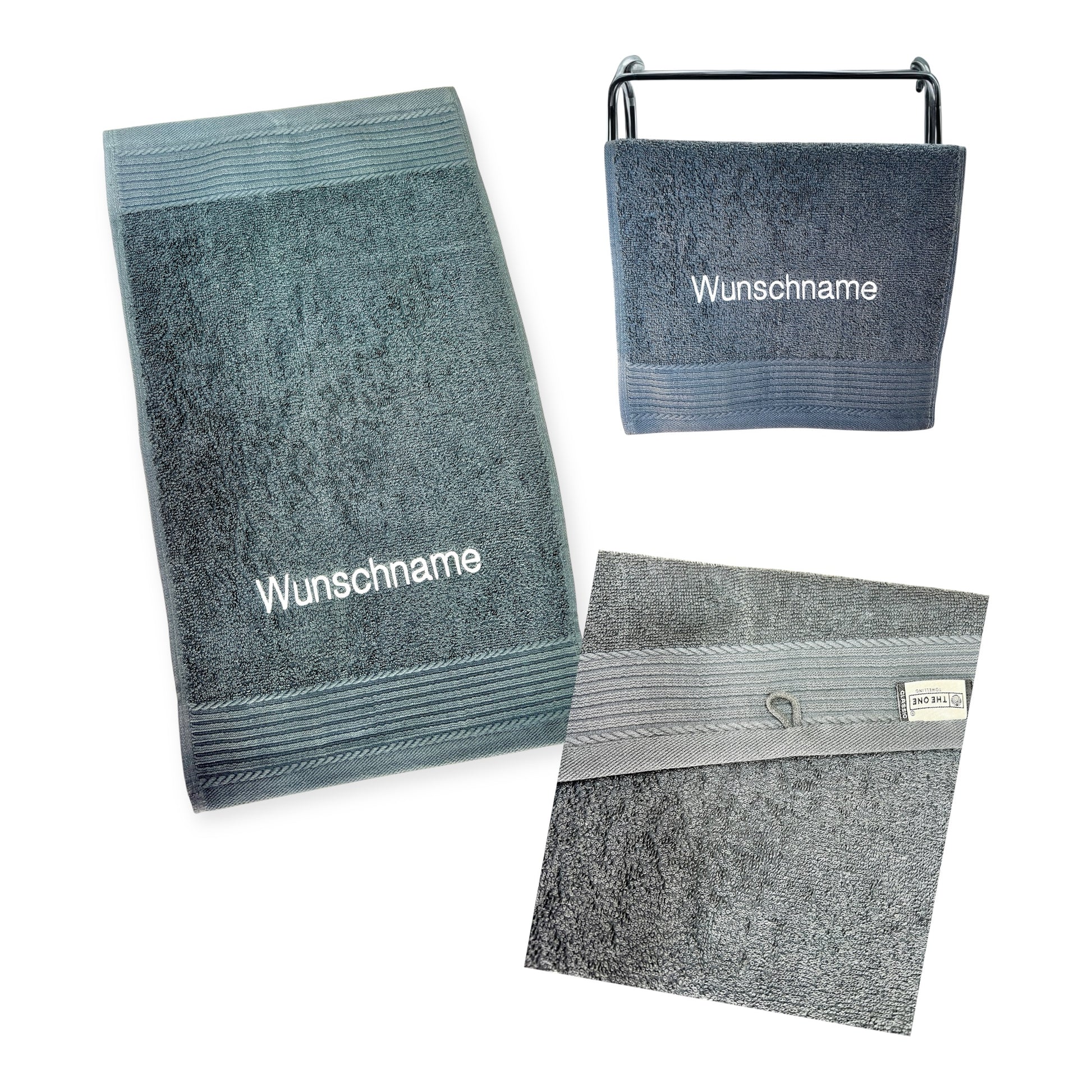 Wir sticken Ihnen einen Namen unter die obere Bordüre. Eine andere Plazierung auf dem Handtuch ist möglich. Bitte schreiben Sie uns Ihre Wünsche bei der Bestellung mit dazu.