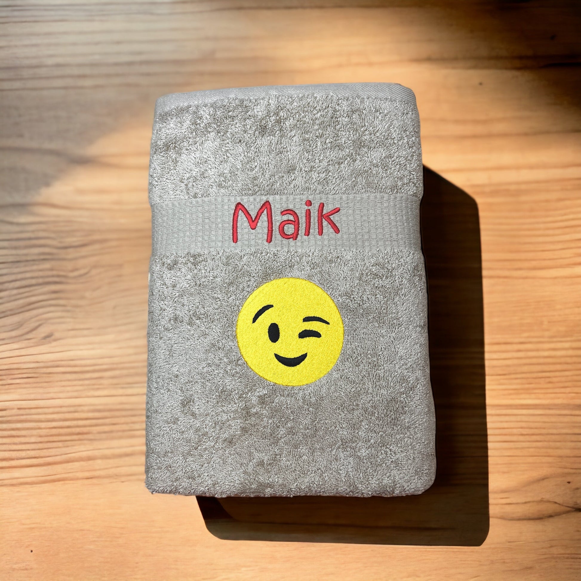 Smiley Handtuch mit Name, Handtuch, Sauna, Wellness, Duschtuch Geschenk
