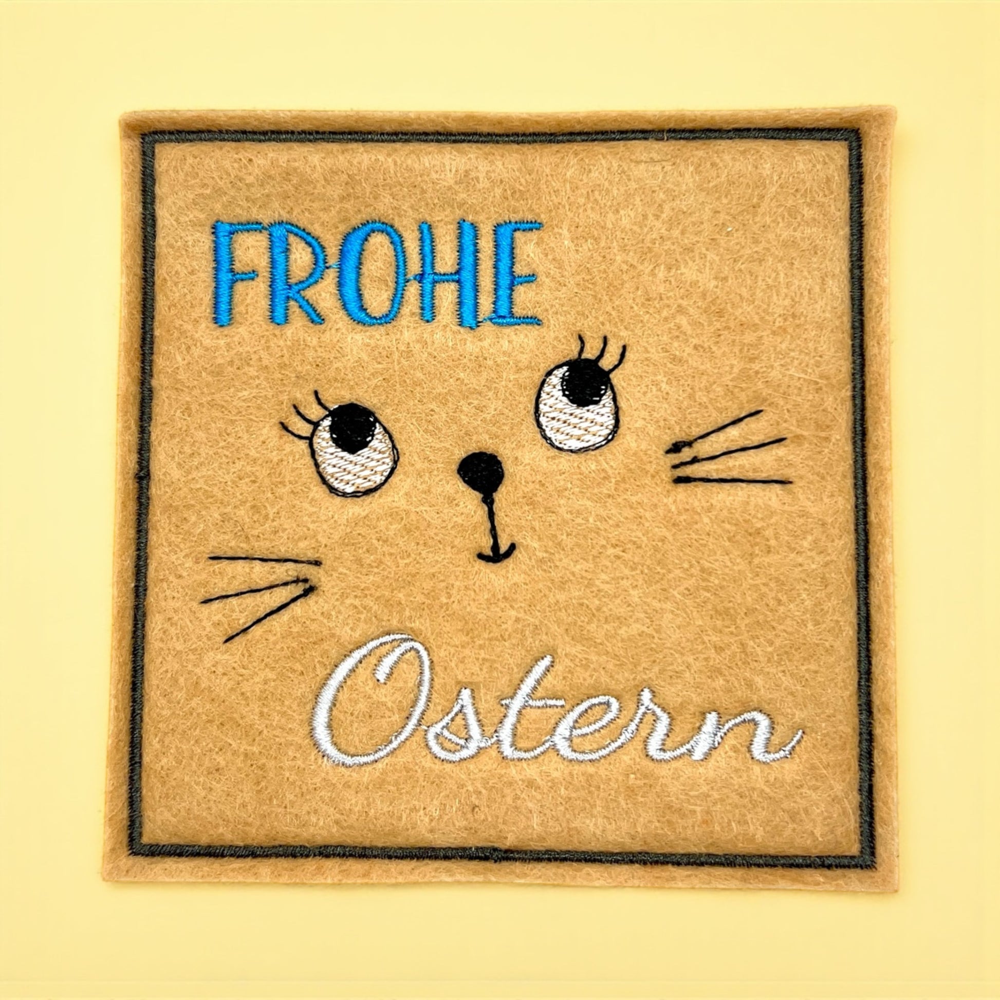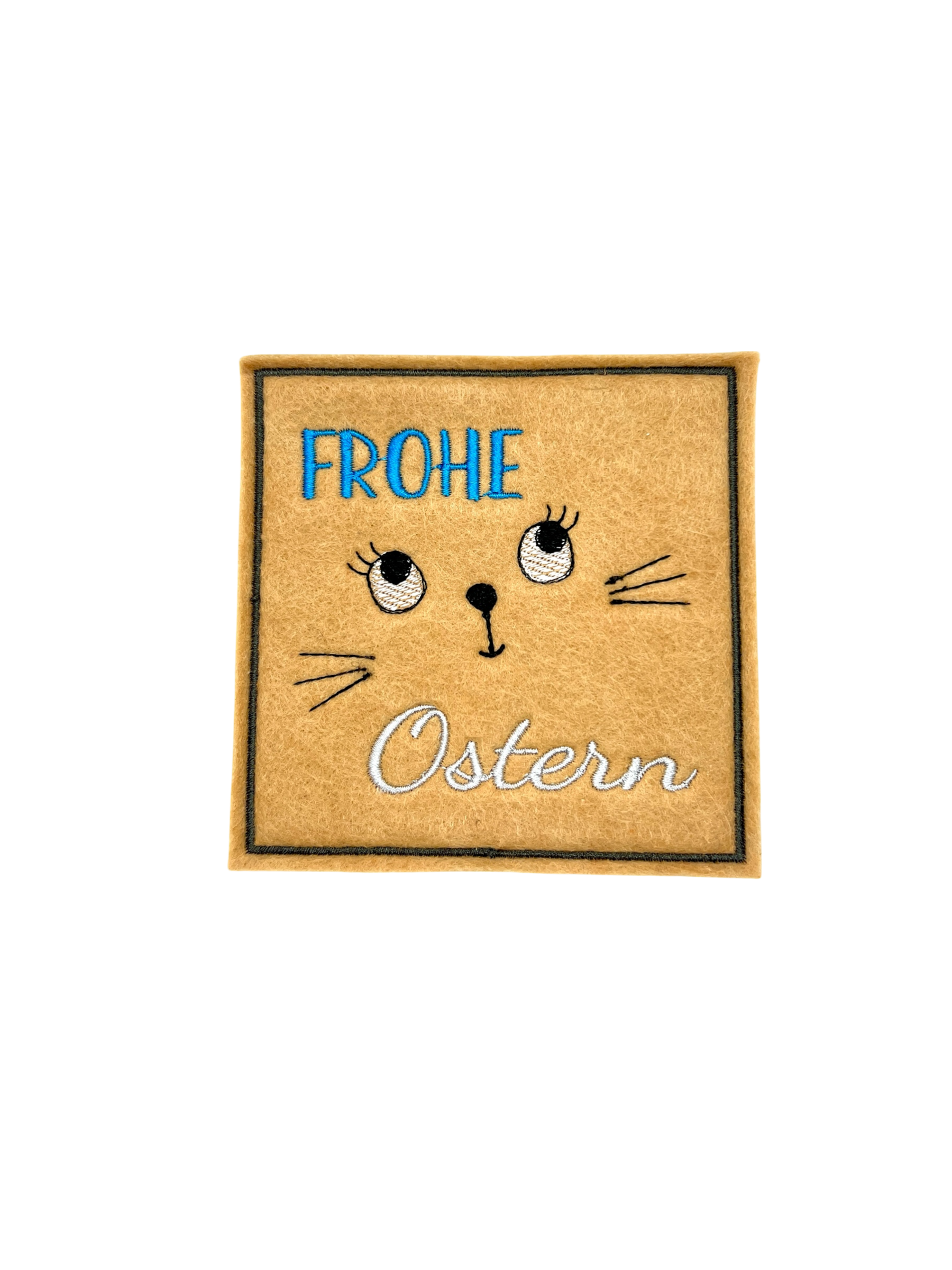 4 Glasuntersetzer aus 2 Lagen Filz, bestickt mit Ostermotiv