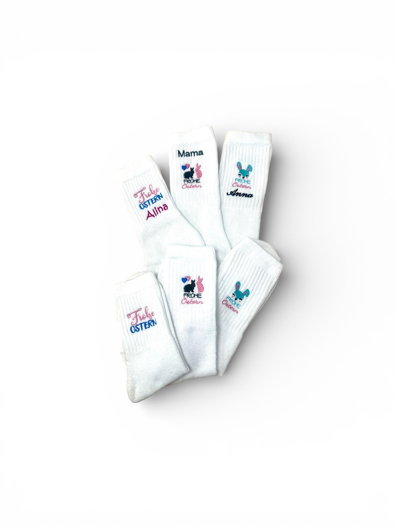 Tennissocken mit Ostermotiv bestickt, personalisierbar